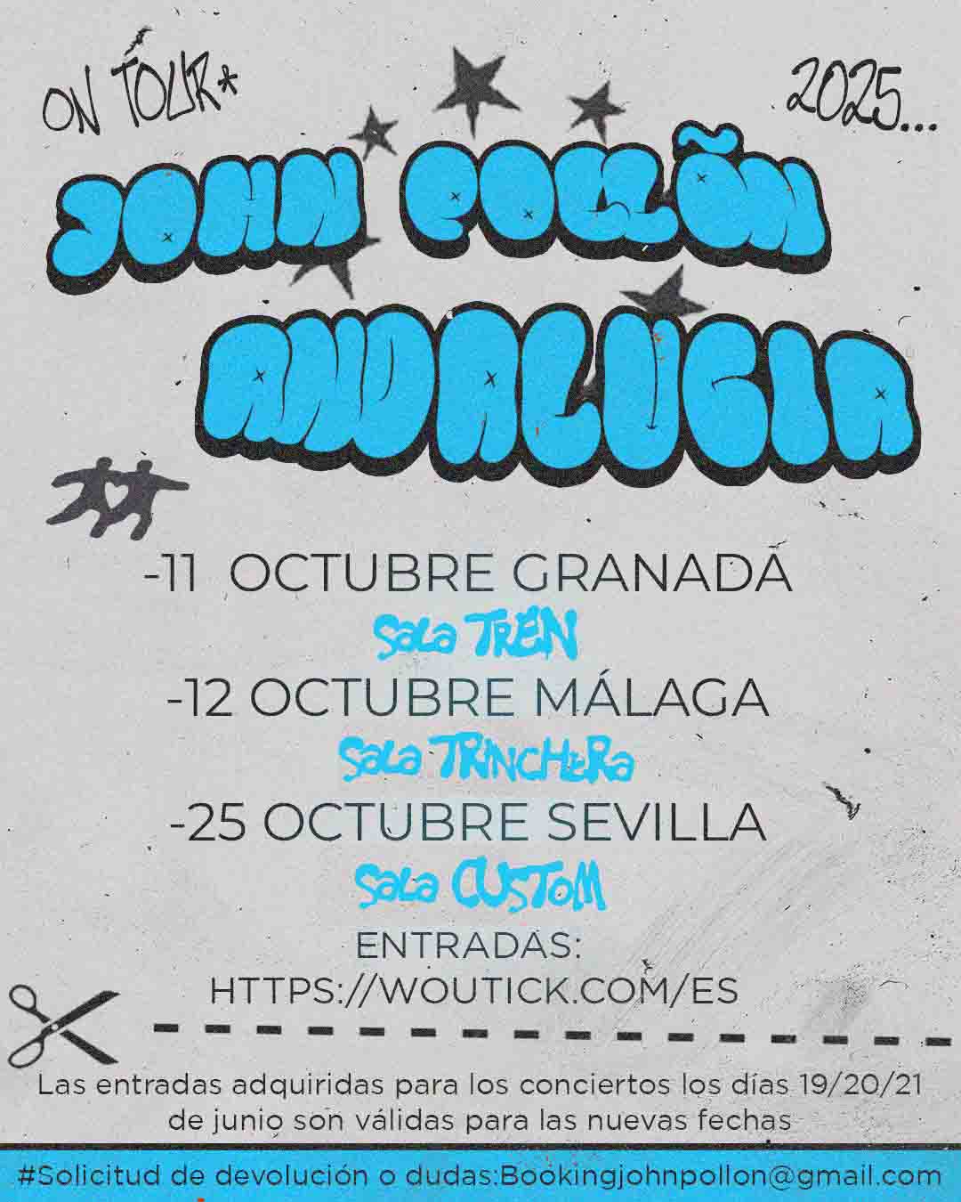 - Entradas disponibles: mediante Woutick para el evento «Jonh Pollõn en Málaga Sala La Trinchera´´